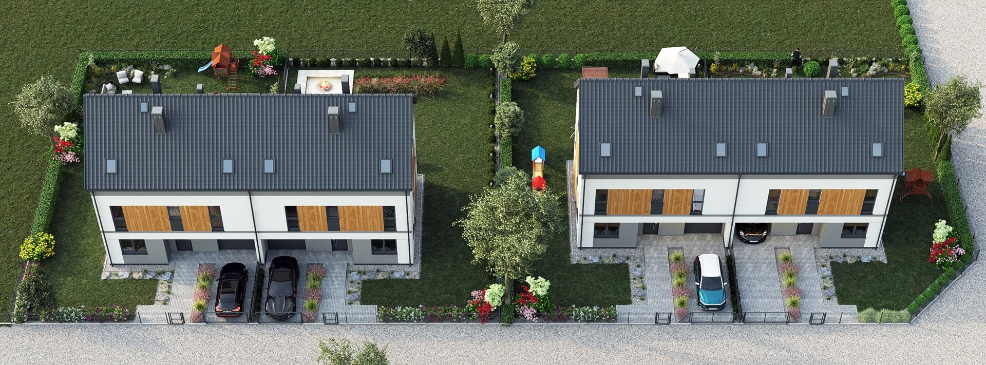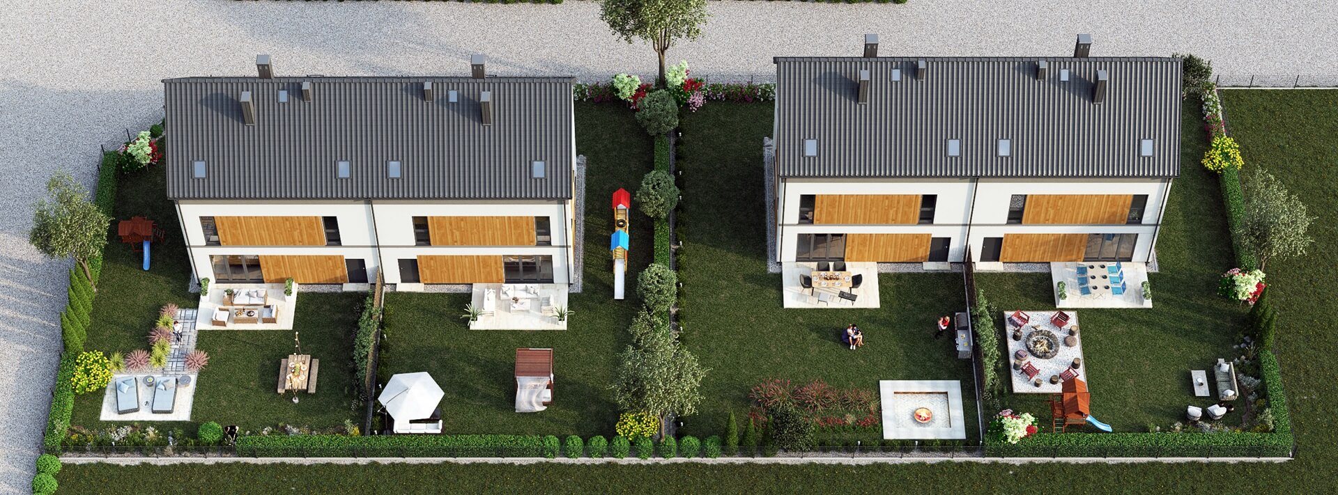 Zewnętrzną architekturę budynków wyróżnia nowoczesność i oryginalny wygląd jak również wysokiej jakości materiały wykończeniowe. W środku każdy lokal cechuje się funkcjonalnym układem przestrzennym. Duże przeszklenia z widokiem na ogródek dają efekt świetnego doświetlenia wnętrz. Wszystko to dzięki indywidualnemu i niepowtarzalnemu projektowi.